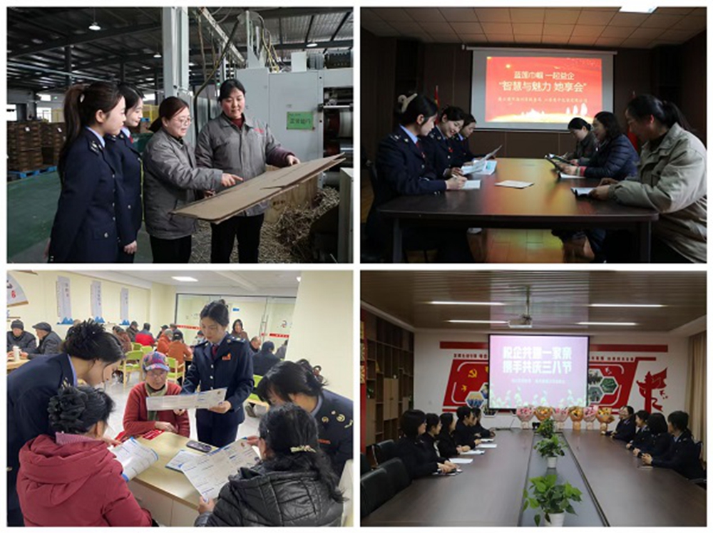 巾帼向党强理论 学习有“她”铸忠诚 3月6日下午,市税务局机关女青年干部在蓝莲花三八红旗工作室开展了“蓝莲巾帼 学习‘她’”宣讲研讨活动。副局长武琼出席活动并发表讲话,向大家致以节日的祝福与诚挚感谢的同时,鼓励大家在未来继续绽放“她”样芳华。“爱心妈妈”代表蒋春霞用质朴的语言分享连云港税务“爱心妈妈”的感人故事,让在场的女干部们深受鼓舞,也为系统内“爱心妈妈”群体注入了新的活力。交流研讨环节女青年干部们围绕前期市局青年理论学习小组推荐的《稀缺》《自律的人生更自由》《工作要有感恩心》等书籍畅谈感悟。 税企互动一家亲 “一起益企”建新功 海州区税务局结合2025年国家17部门部署的“一起益企”中小企业服务行动,由“黎明工作室”团队、先进妇女代表组成的巾帼女税官专家团队,走进市女企业家企业,开展座谈交流,及时了解企业经营状况和涉税需求,解决企业急难愁盼问题,为企业成长保驾护航。 税法宣讲进社区,共融共建展文明 连云港经济技术开发区税务局开展“巾帼宣讲暖民心,税惠政策进万家”税法宣传活动。邀请辖区内十余家涉税专业服务机构开展座谈,围绕税收政策解读、涉税服务优化以及行业发展等议题展开深入交流。女税干们还走进环湖社区,围绕个人所得税专项附加扣除与退税知识开展宣传活动,把税收政策送到居民家门口。 对话女性新征程 凝聚巾帼新力量 3月5日,连云区税务局与港口控股集团联合开展“智慧与魅力 她享会”女性沙龙,女干部代表们围绕党建引领税企互信共赢、女性职业发展面临的发展和挑战等话题展开热烈讨论,沙龙现场气氛热烈。女税干还向港口女职工赠送鲜花,致敬最美劳动者。