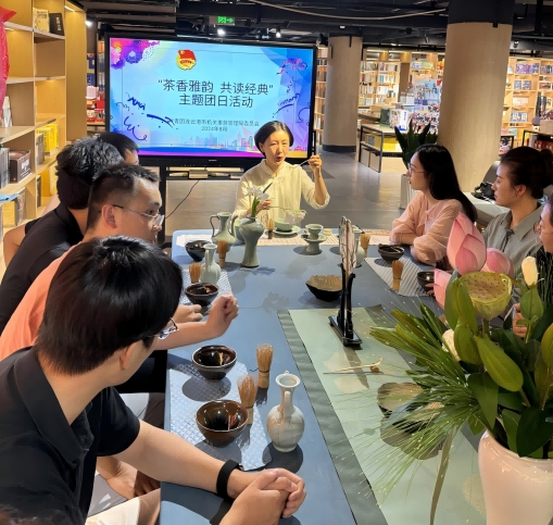一盏清茶,一捧好书,旨在品味茶香与书香交织的独特韵味。8月14日,市机关事务管理局团委以“茶香雅韵 共读经典”为主题,通过访谈交流、书籍分享、经典诵读、茶艺展示等多种形式,增强局系统广大青年凝聚力,拓宽青年眼界,陶冶青年情操,引导青年以书为引,营造爱读书、善读书的浓厚氛围,让青年在实践中修身、知礼、静气、清心,感悟中华传统文化的博大精深。 活动中,青年们以“共读一本书”的形式诵读了中国乃至世界上现存最早、最完整、最全面的茶学专著《茶经》,重温茶圣陆羽的毕生之作。通过了解宋代的点茶历史等相关知识,开启一段充满茶香的科普之旅;同时,邀请茶艺老师示范仿宋点茶的有关步骤流程,用复刻宋代的点茶器皿还原宋人之雅。大家在体验仿宋点茶斗茶和茶汤画的过程中,深刻感受到了宋代丰富多彩的茶文化。 最后,大家还在互动交流中分享了自己的心得体会,彼此间通过分享茶书著作一同探索传统茶文化的智慧和茶香的韵味。此次活动不仅为青年的素质拓展注入了新的活力,丰富局团委“机阅昂扬”青年学习社的活动形式,也为机关事务文化发展增添了新的亮点。