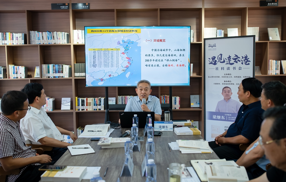 活动期间,市社科联机关党支部邀请部分专家学者深入市东社区和郁洲公园城市书房,与市民进行现场互动交流。并邀请社科著作《遇见连云港》的主要撰稿人、市图书馆馆长梁继东为市民群众带来了一场精彩的连云港古今故事分享。通过丰富的图片、生动的故事和详实的数据,让市民群众深入解读了连云港的历史文化、地域特色以及在新时代背景下的发展机遇。他从连云港的古老传说讲起,谈到丝绸之路经济带的重要节点,再到现代化港口城市的崛起,让大家对这座城市有了更为全面和深入的认识。