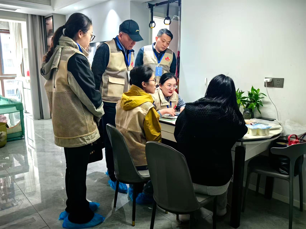 三是亮明“党员身份”,专业指导提质效。党员们佩戴党员徽章,随调查员们深入住户,主动亮明身份并接受监督,不仅充当政策的“宣传员”,为居民们耐心释疑,赢得信任;更是业务的“指导员”,凭借专业素养现场答疑解惑,从源头为数据质量把关,有效提升调查工作整体效能。
