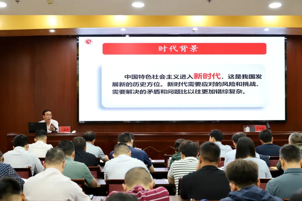 省委党校科学社会主义教研部主任、二级教授王金水作《习近平新时代中国特色社会主义思想的世界观和方法论》专题辅导。