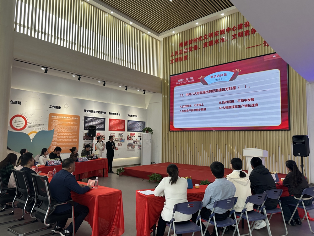 为深入学习宣传贯彻习近平新时代中国特色社会主义思想和党的二十届三中全会精神, 10月10日,县委宣传部、县委县级机关工委等单位在县新时代文明实践中心联合举办了“强国复兴 奋斗有我”2024灌南“学习达人”挑战赛决赛。